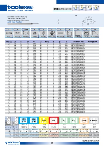d1 ± L2 L3 L4 d3 L1 d2(h6) Z y° a° Coated Code Price (Euro)